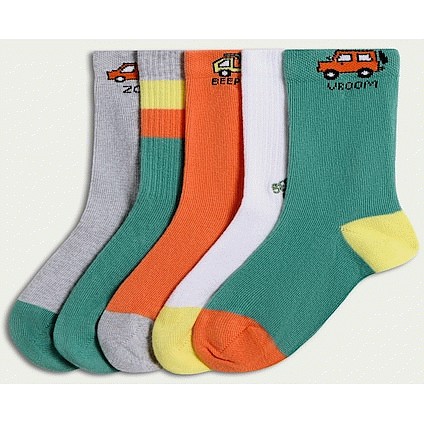 Boys 5-Pack Cotton Rich Car Print Ankle Socks in Multi