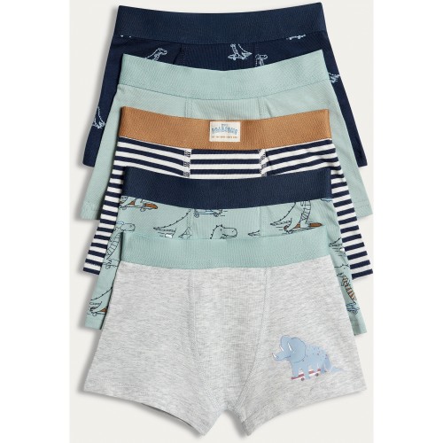 Boys 5-Pack Cotton Rich Dinosaur Print Trunks in Green Multi