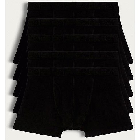 5-Pack Cotton Rich Logo Waistband Trunks in Black