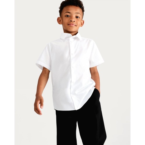 F&F School Boys 3-Pack Cotton Rich Skinny Fit Short Sleeved Shirts in White