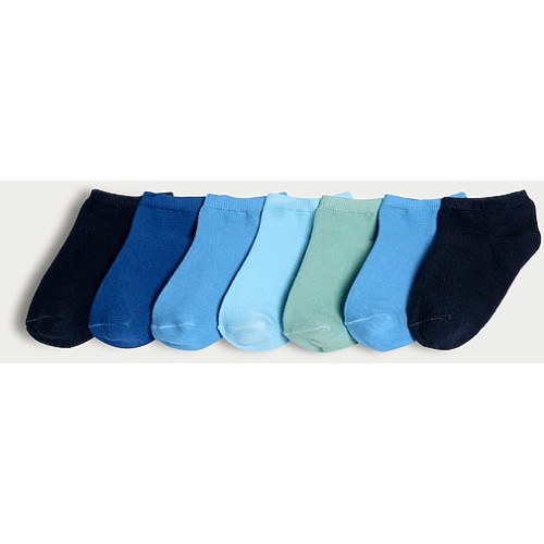 Boys 7-Pack Cotton Rich Ankle Socks in Blue