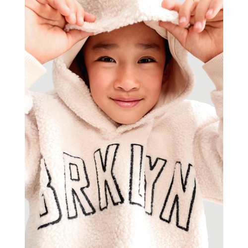 F&F Boys Borg Textured Slogan Hoodie in Cream
