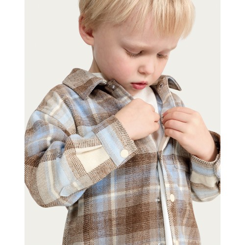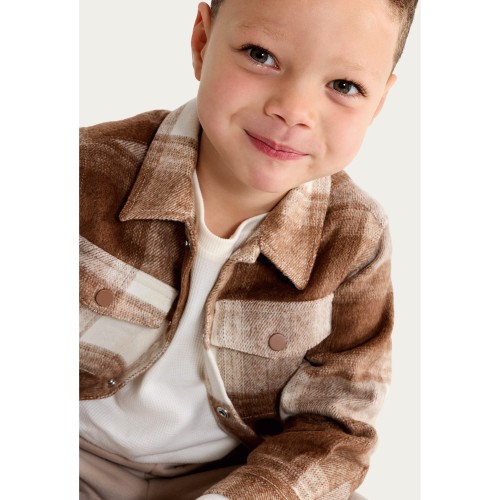 F&F Boys Check Print Pocket Front Shacket in Brown