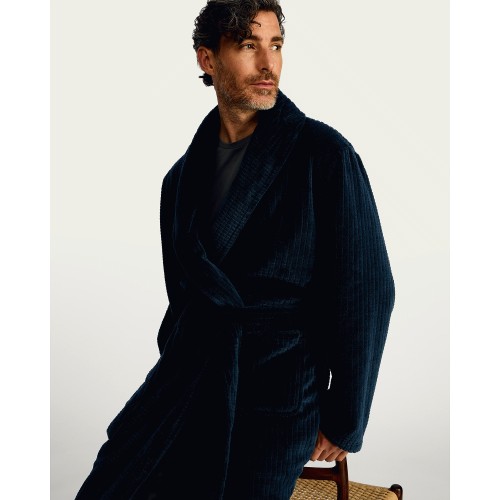 Fleece Textured Dressing Gown in Navy
