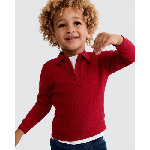 F&F Boys Cable Knit Half Zip Polo in Red