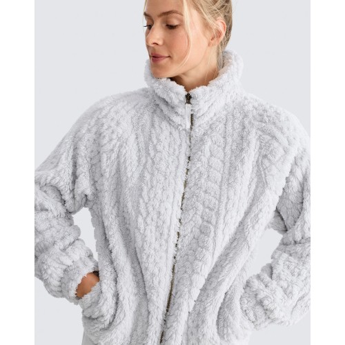 Cable Knit Fleece Zip Up Pyjama Jacket in Grey