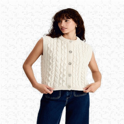Fleece Cable Knit Zip Up Pyjama Jacket in Cream