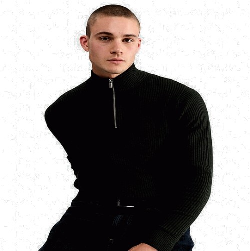 Pure Cotton Ribbed Half Zip Jumper in Khaki