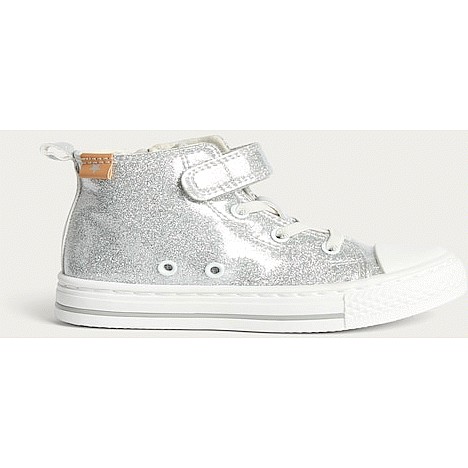 Girls Glitter Touch Fastening High Top Trainers in Silver