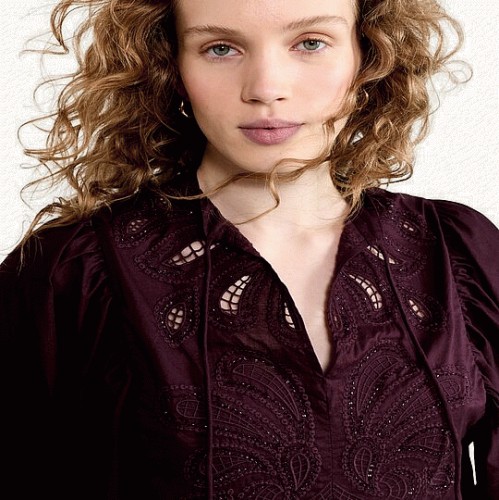 The F&F Edit Pure Cotton Embroidered Blouse in Burgundy