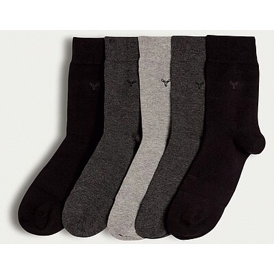5-Pack Cotton Blend Deer Embroidered Antibacterial Socks in Grey