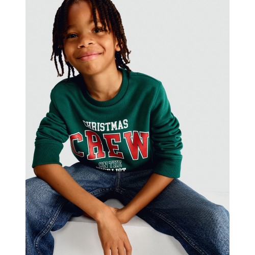 F&F Boys Cotton Rich Christmas Crew Sweatshirt in Green