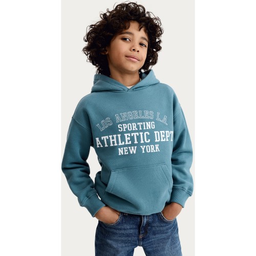 F&F Boys Cotton Rich Slogan Hoodie in Teal