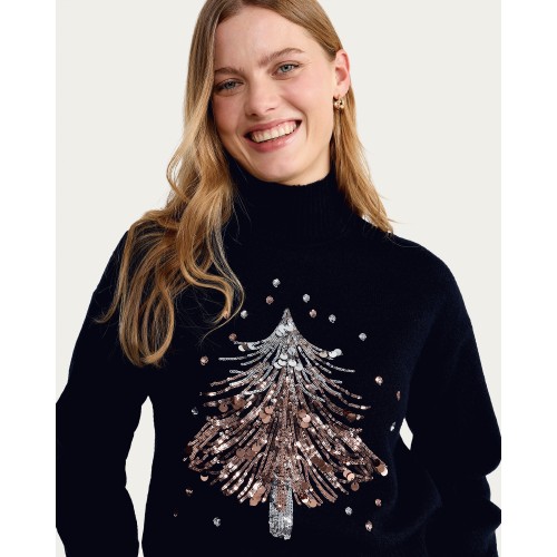 F&F Boys Cotton Rich Christmas Motif Jumper in Navy