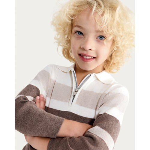 F&F Boys Cotton Rich Colour Block Half Zip Polo Top in Mink