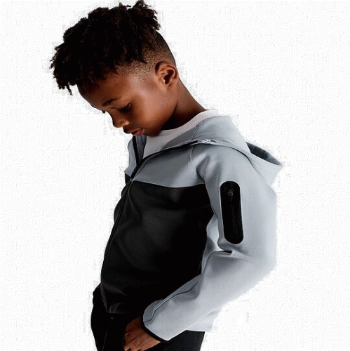 F&F Active Boys Cotton Rich Colour Block Zip Up Hoodie in Grey