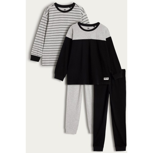 Boys 2-Pack Cotton Rich Stripe Print and Colour Block Pyjamas in Grey Multi