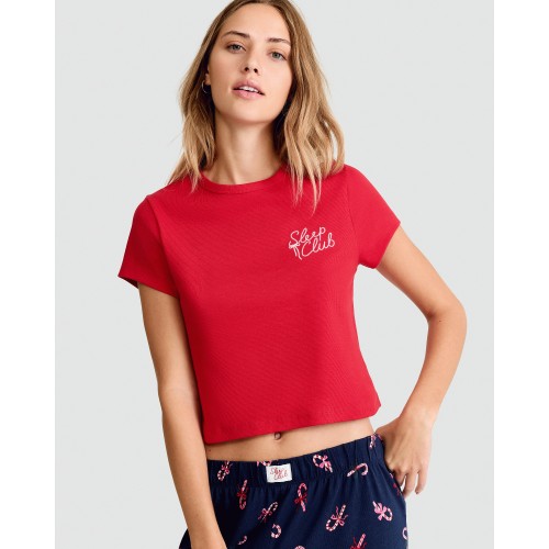 Cotton Rich Sleep Club Slogan Pyjama Top in Red