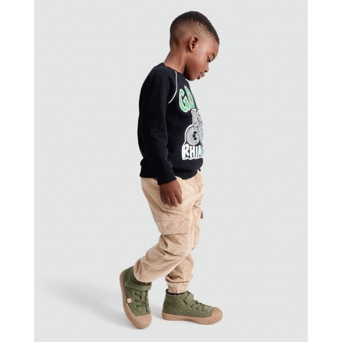 F&F Boys Cotton Rich Corduroy Cuffed Cargo Trousers in Stone