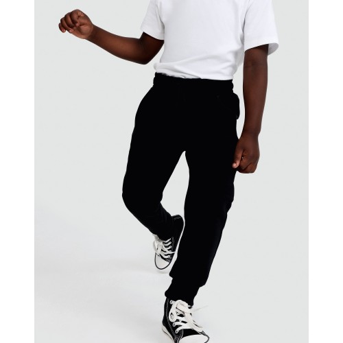 F&F Boys Cotton Rich Cuffed Drawstring Cargo Joggers in Black