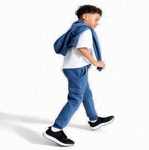 F&F Boys Cotton Rich Cuffed Cargo Joggers in Blue