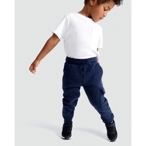 F&F Boys Cotton Rich Cuffed Cargo Joggers in Blue