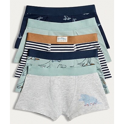 Boys 5-Pack Cotton Rich Dinosaur Print Trunks in Green Multi