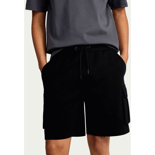 Cotton Rich Drawstring Cargo Shorts in Black