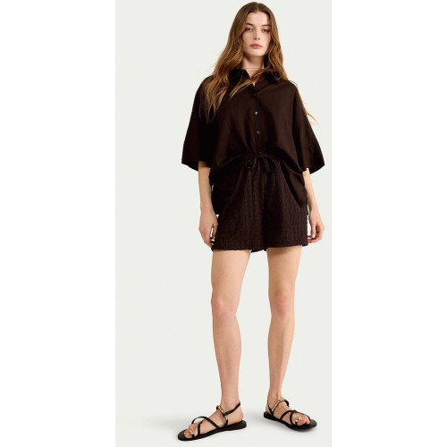 Textured Drawstring Shorts in Chocolate