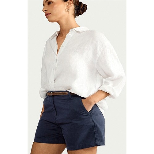 Cotton Rich Belted Mid Rise Chino Shorts in Navy