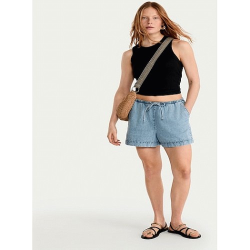 Cotton Rich Textured Drawstring Shorts in Navy