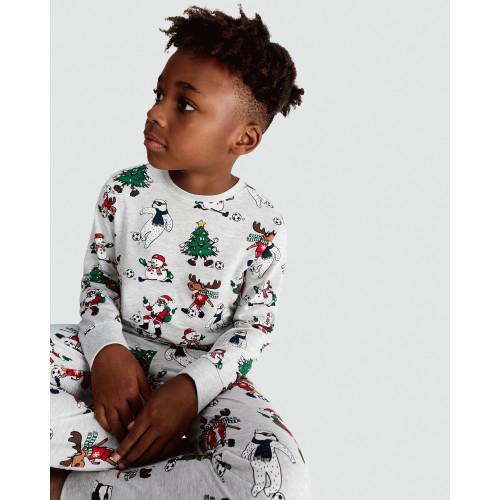 Boys Cotton Rich Festive Print Top and Cuffed Joggers Pyjamas in Grey Multi