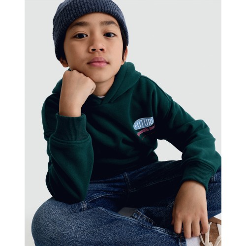 F&F Boys Cotton Rich Slogan Hoodie in Green