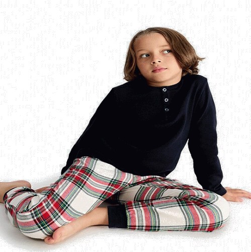 Boys Pure Cotton Henley Top and Cuffed Bottoms Pyjamas in Multi
