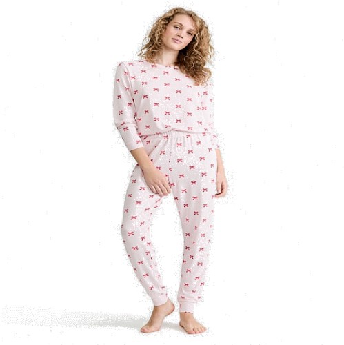 Bow Print Top and Cuffed Joggers Pyjamas in Pink