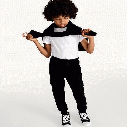 F&F Boys Cotton Rich Cuffed Drawstring Cargo Joggers in Black