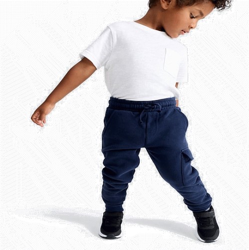 F&F Boys Cotton Rich Cuffed Cargo Joggers in Blue