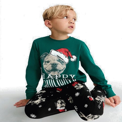 Boys Pure Cotton Happy Howlidays Top and Cuffed Joggers Pyjamas in Navy Multi