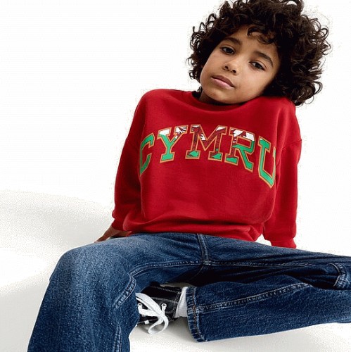 F&F Boys Cotton Rich Cymru Print Oversized Fit Sweatshirt in Red