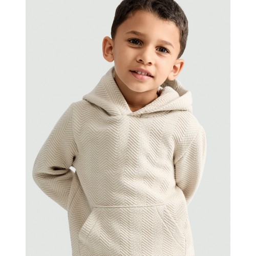 F&F Boys Cotton Blend Herringbone Pattern Kangaroo Pocket Hoodie in Tan