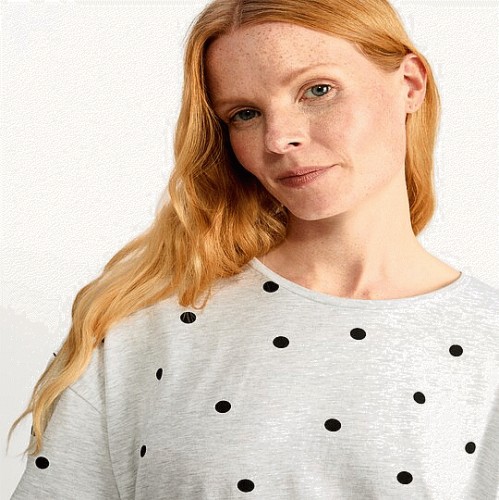 Cotton Rich Polka Dot Short Sleeved Nightdress in Grey Marl