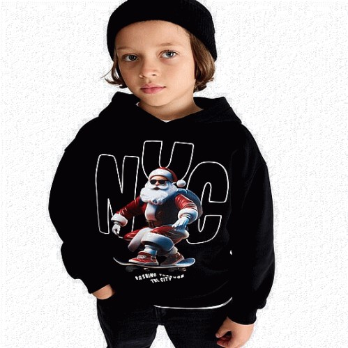 F&F Boys Cotton Rich NYC Santa Skateboarding Hoodie in Black