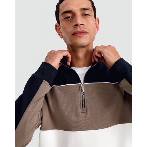 Cotton Rich Half-Zip Colour Block Sweatshirt in Navy