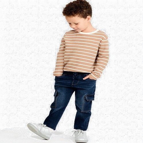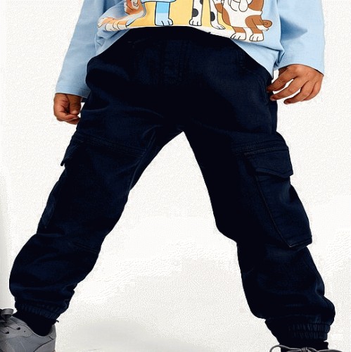 F&F Boys Cotton Rich Cuffed Cargo Jeans in Navy