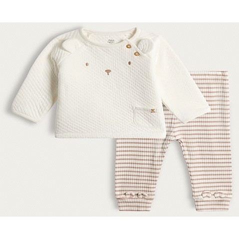 2-Piece Cotton Rich Bear Face Jumper and Leggings Set in White