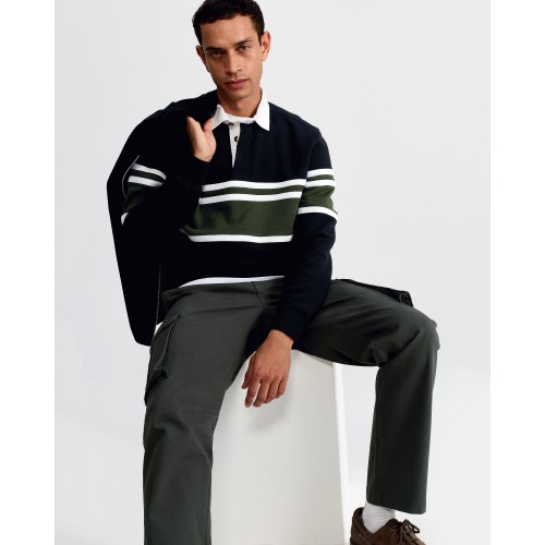 Pure Cotton Stripe Print Long Sleeved Rugby Shirt in Navy