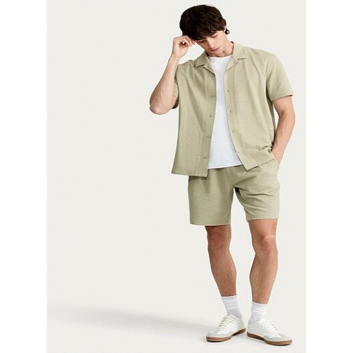 Cotton Rich Textured Drawstring Shorts in Green