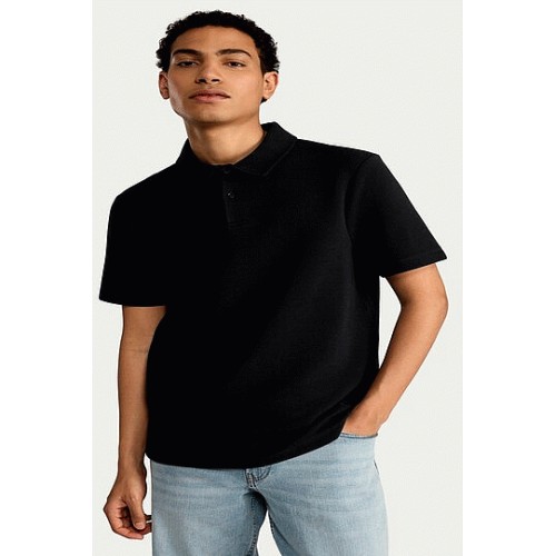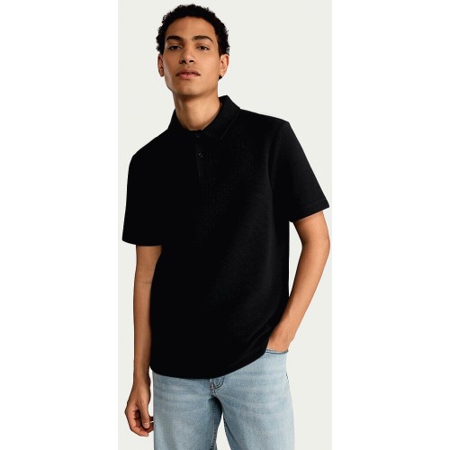 Cotton Rich Textured Short Sleeved Polo Shirt in Black