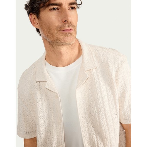 Cotton Rich Textured Short Sleeved Shirt in Ecru
