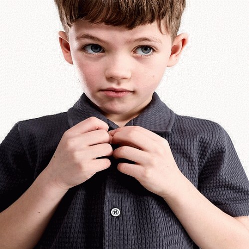 F&F Boys Cotton Rich Textured Short Sleeved Shirt in Grey
